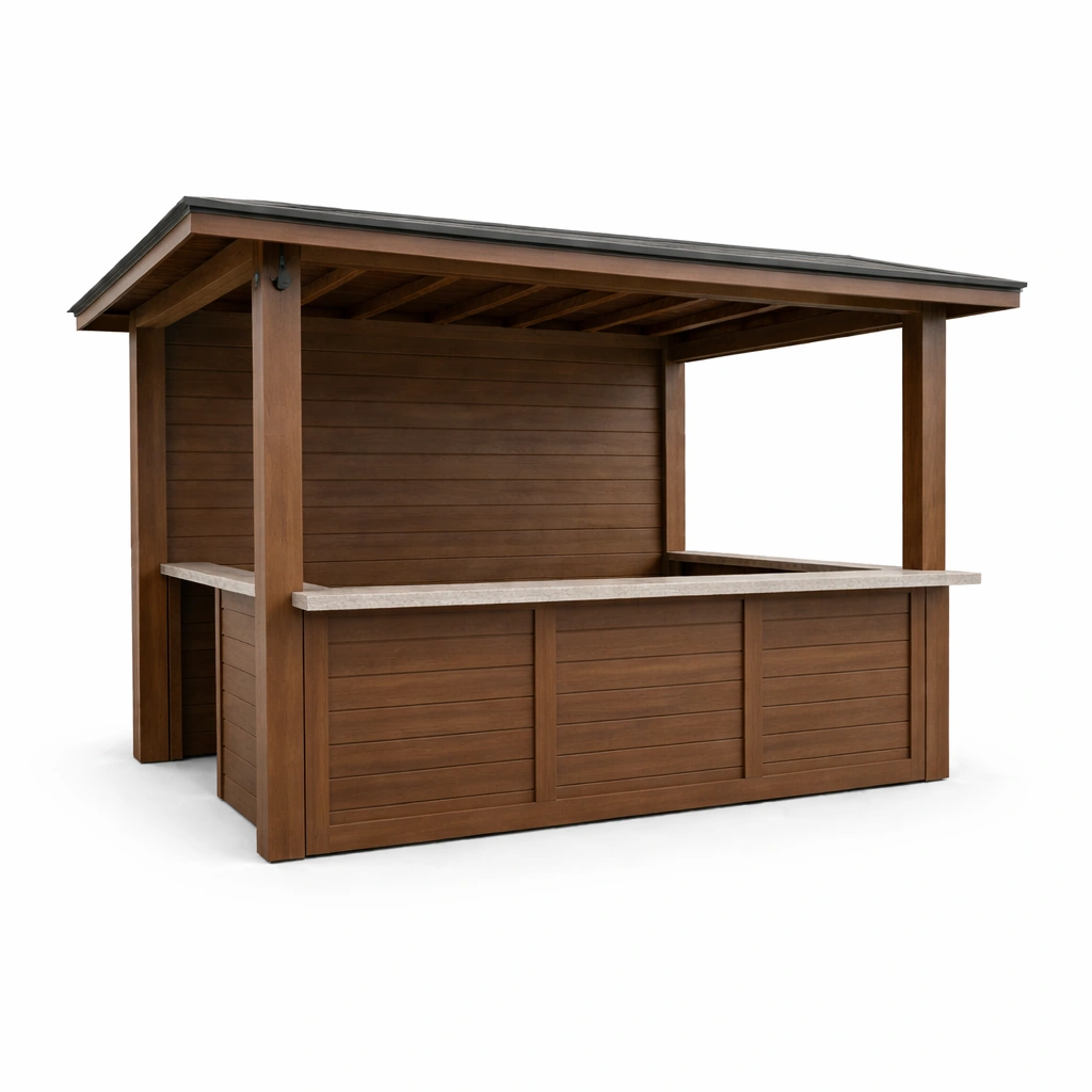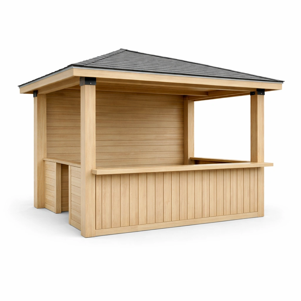 Bar de jardín de madera de pino con techo de fibra de vidrio