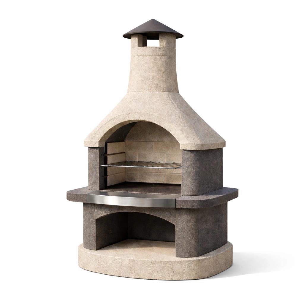 Barbacoa de hormigón para exterior con chimenea y acero inoxidable