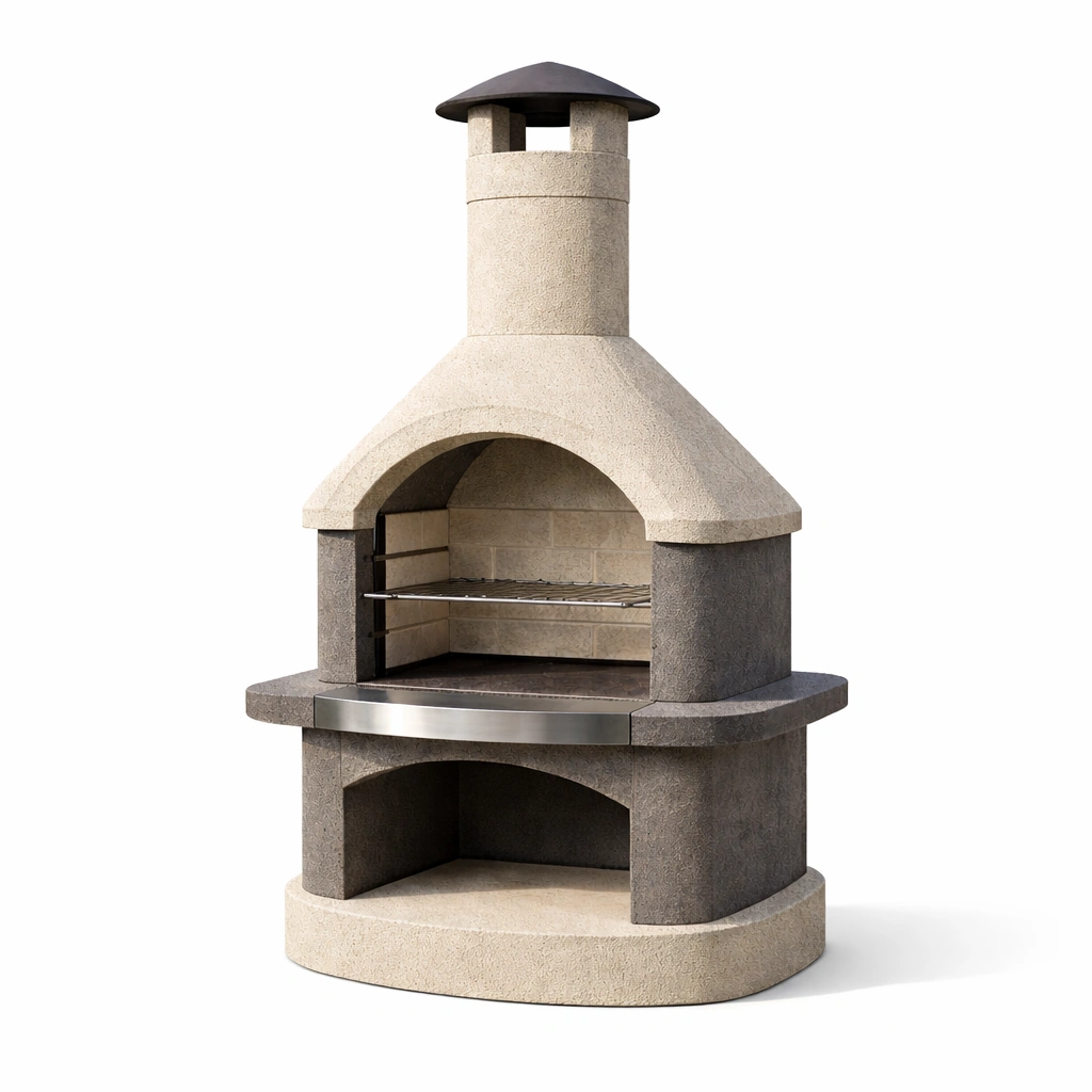 Barbacoa de jardín en hormigón reforzado con chimenea