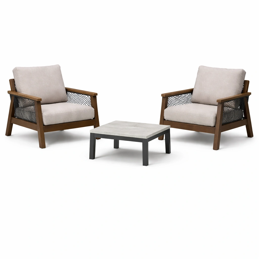 Conjunto de jardín de Muebles de Exterior con Sillones de Madera y Resina y Mesa