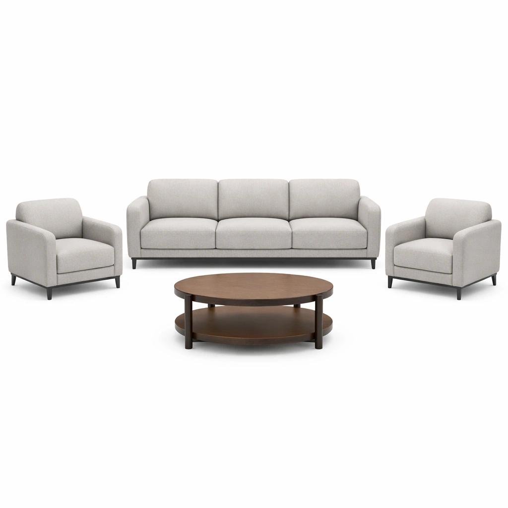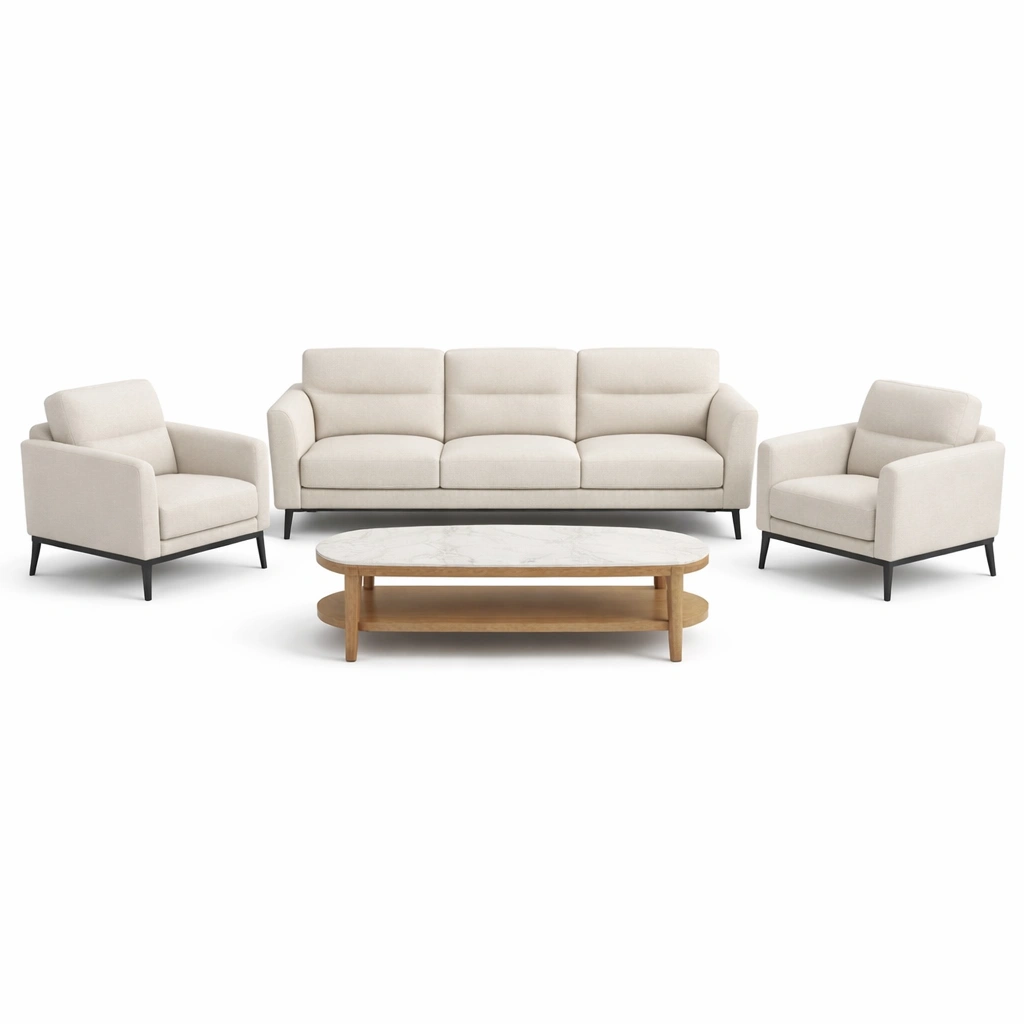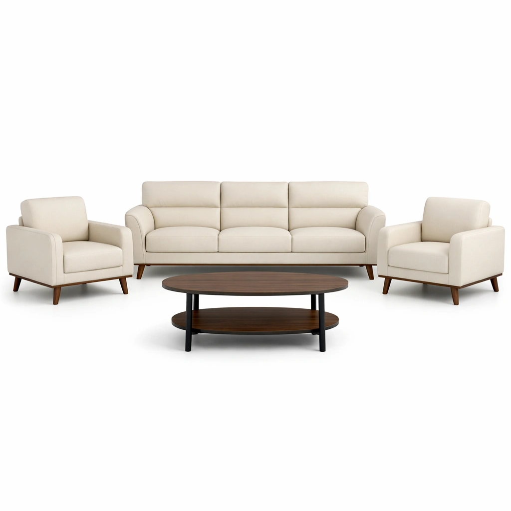 Conjunto de sofá de Tres Plazas y Sillones con Mesa de Centro Ovalada Beige