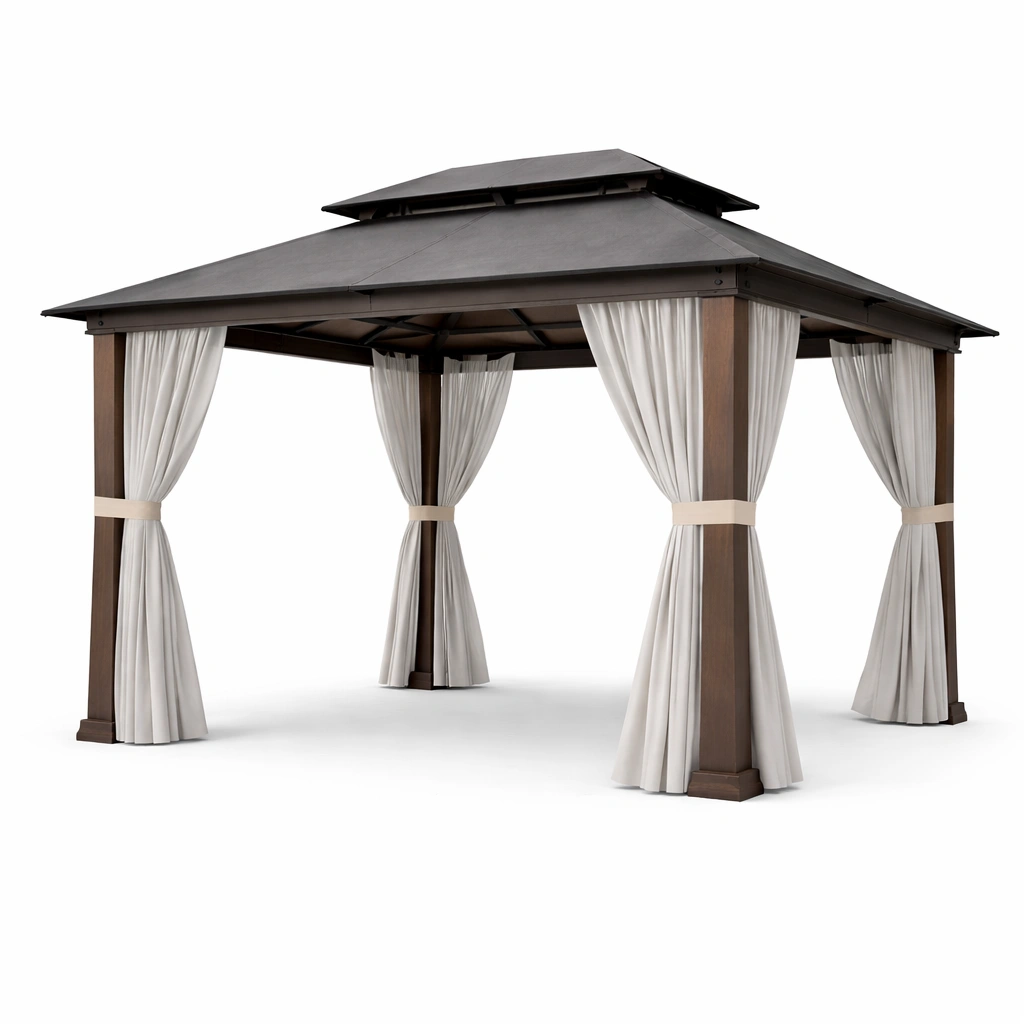 Gazebo de Acero con Cortinas de Poliéster Beige