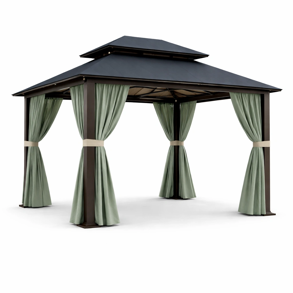 Gazebo de Metal con Cortinas de Poliéster Verde