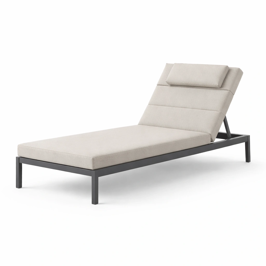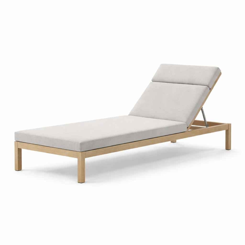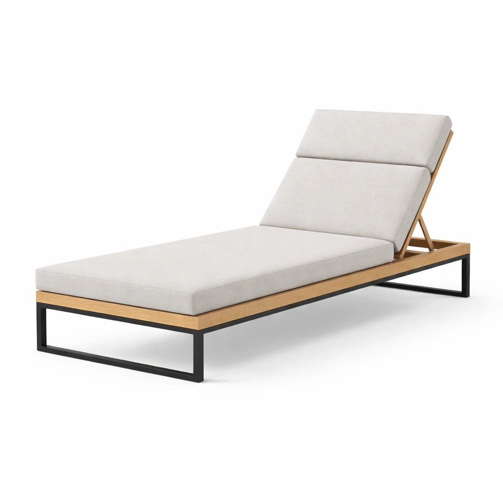 Tumbona ajustable de madera y acero con cojin de poliester beige